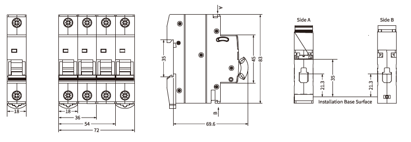 El diseño del CAB2-63X es un triunfo de la eficiencia espacial.Su tamaño en miniatura no sólo simplifica el proceso de instalación, sino que también conserva valiosos espacios en paneles eléctricos abarrotados, una característica primordial en los entornos actuales donde prima el espacio.